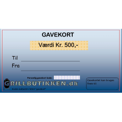 Du modtager gavekort og personlig kode straks efter ordregennemførelse. Gavekortet er gyldigt 1 år fra købsdato, og kan bruges til alle varer i grillbutikken.